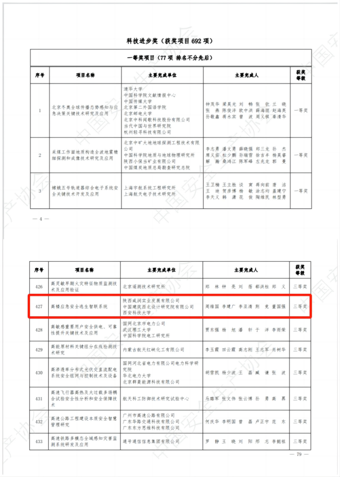 “中國(guó)安全生產(chǎn)協(xié)會(huì)第四屆安全科技進(jìn)步獎(jiǎng)”!