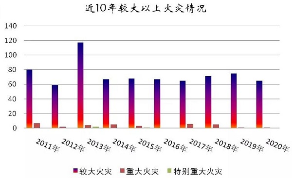 近日,應(yīng)急管理部消防救援局發(fā)布了2020年全國火災(zāi)情況。去年全年,全國消防救援隊(duì)共接報(bào)火災(zāi)25.2萬起,未發(fā)生特別重大火災(zāi),較大火災(zāi)穩(wěn)中有降,一般火災(zāi)形勢總體向好。