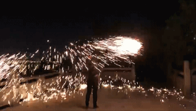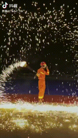 可以看到隨著不斷揮動迸發(fā)出的火星