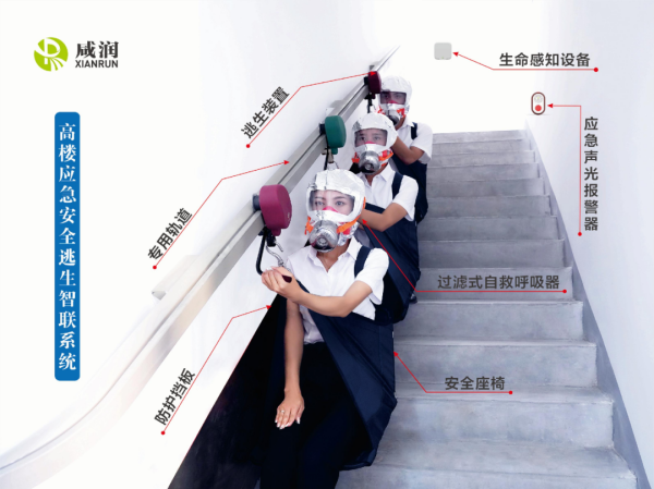 高樓應(yīng)急安全逃生智聯(lián)系統(tǒng)的專用軌道,將消防疏散通道原有樓梯扶手進(jìn)行升級改造,使其具備“扶手逃生”雙功能,也就是說,在平時,作為樓梯扶手正常使用;當(dāng)發(fā)生緊急情況時,作為火災(zāi)應(yīng)急逃生專用軌道,配合逃生裝置,可實(shí)現(xiàn)百米高層3分鐘快速逃生,革命性定義了樓梯扶手功能。